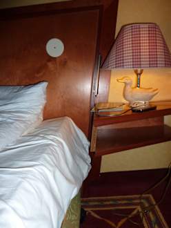 Einfach ein Brett ohne Furnier angeschraubt und im Kopfteil des Bettes Verteilerdosenabdeckungen