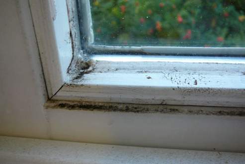 Verdreckte, verschimmelte Fensterrahmen.