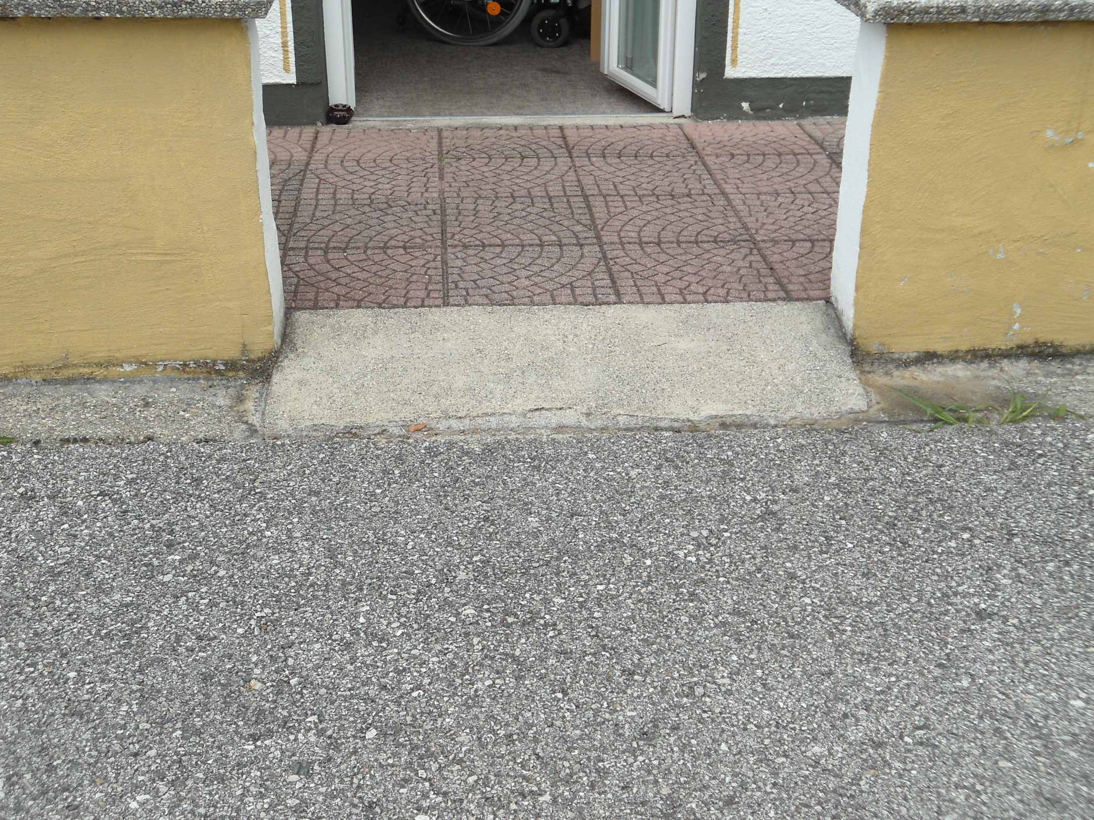 Rolliauffahrt zur Terrassentüre, um zum Zimmer zu kommen.