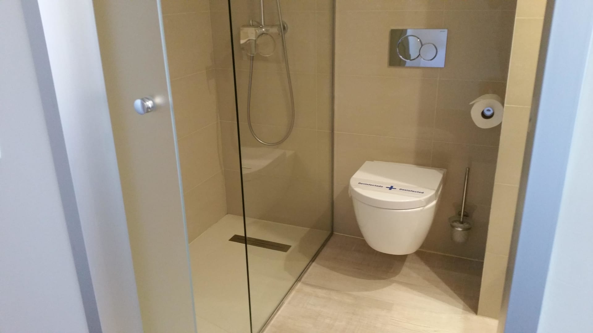 Flache Regendusche und hohe Toilette