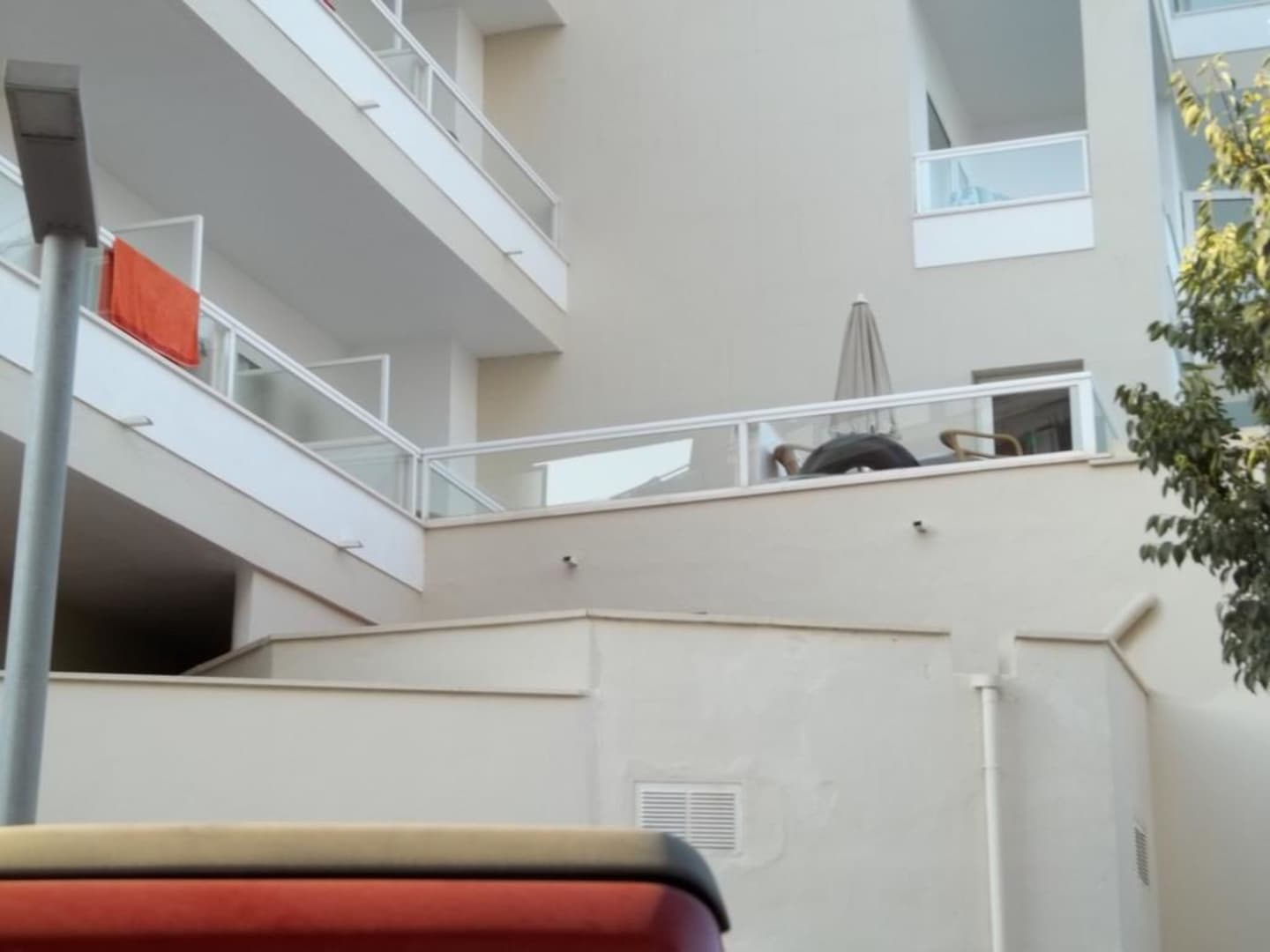 Vorgelagert vor unserem Balkon ein weiterer unbewohnter, davor noch ein weiterer, dahinter dann endlich der seitl. MB