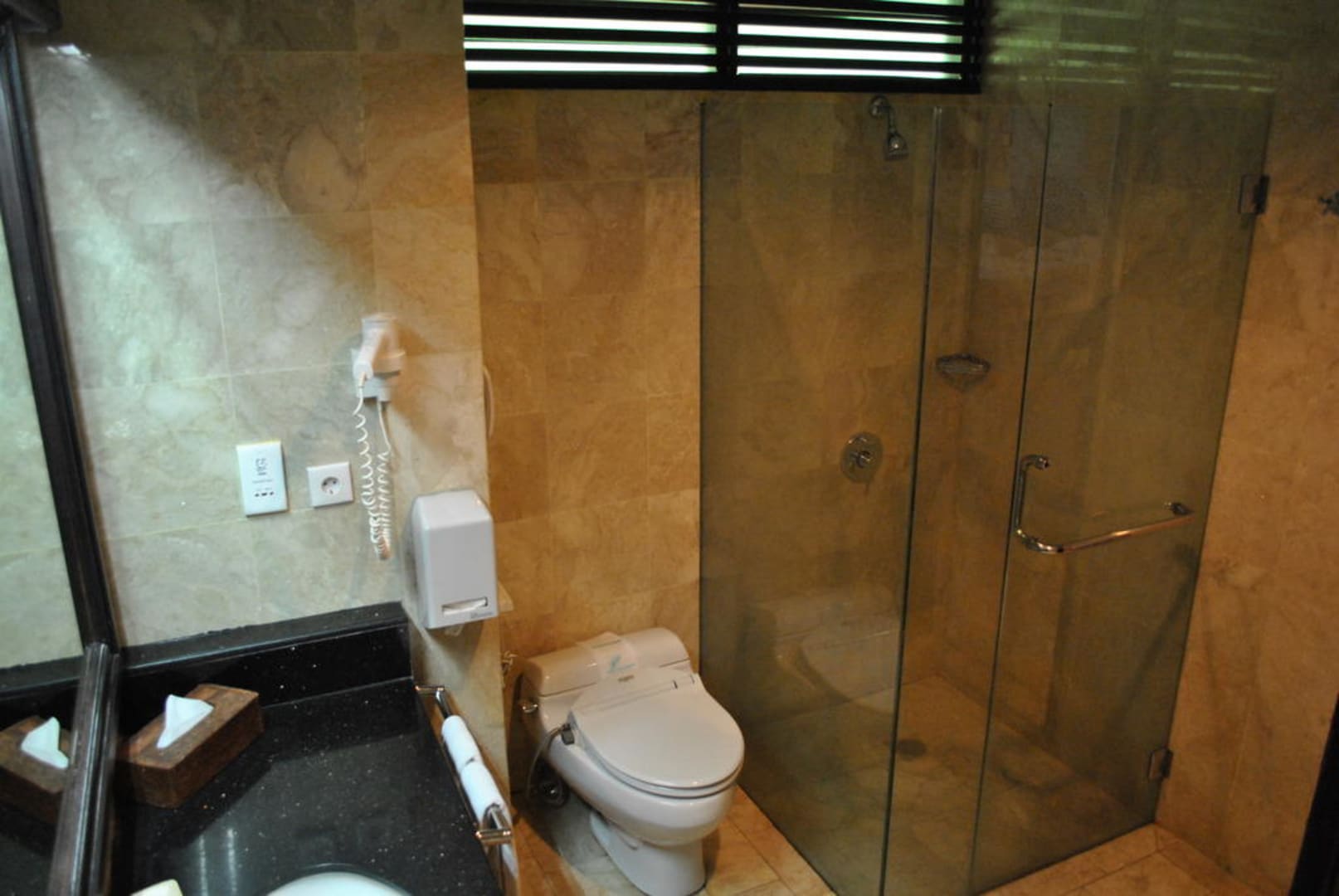 Badezimmer, grosse Dusche im DeLuxe-Zimmer