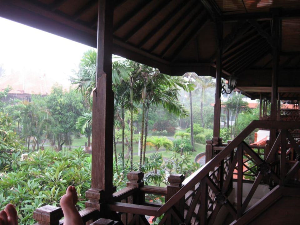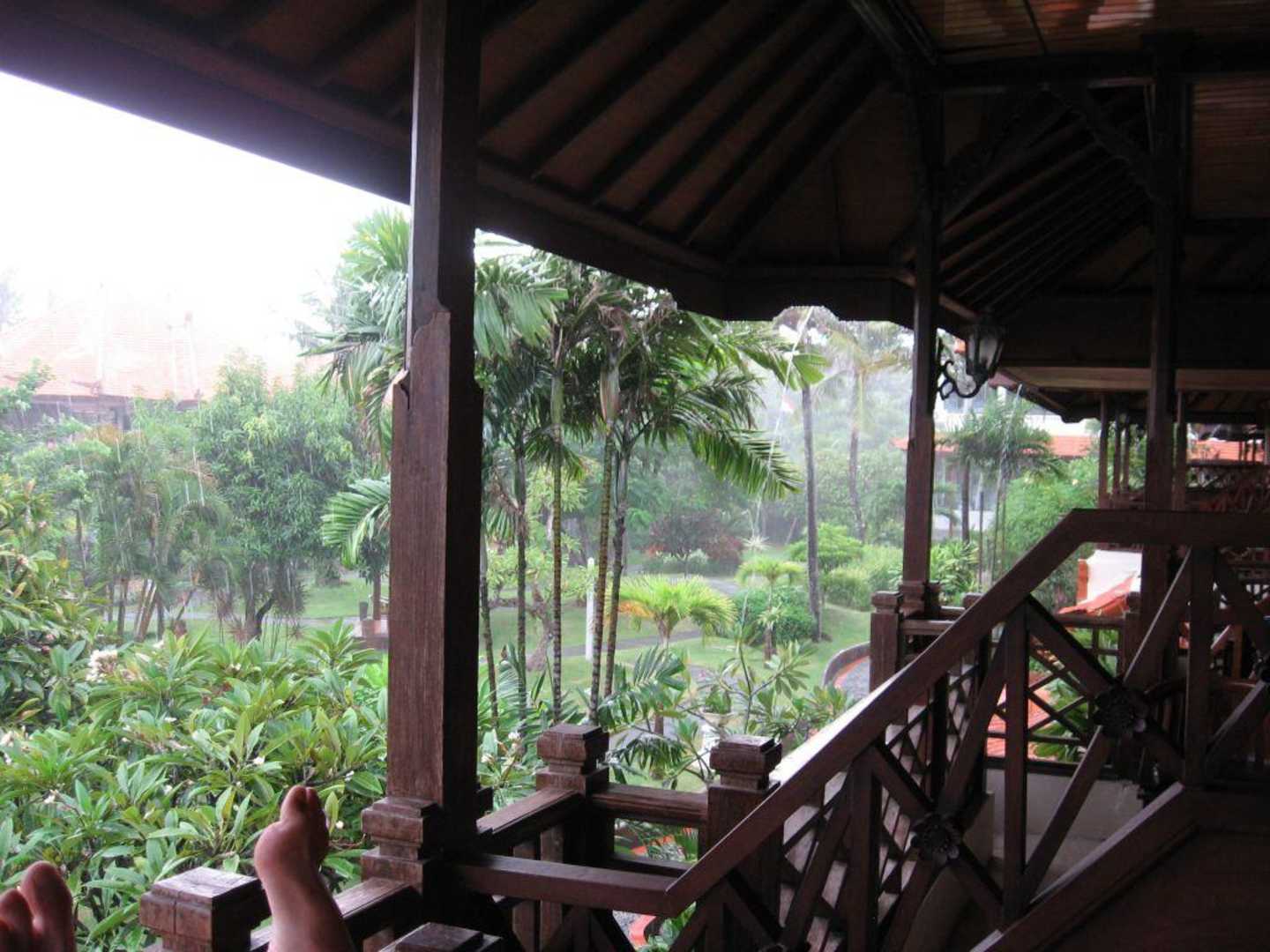 RegenBlick vom Balkon aus bei Regen. Und wenn es regnet, dann richtig