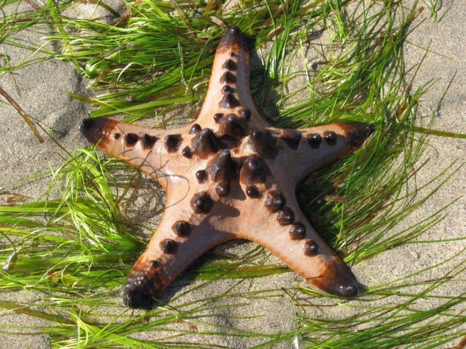 Seestern. Kann man bei einem Sparziergang bei Ebbe sehen. Aer bitte nur anschauen, nicht anfassen oder gar mitnehmen. Die Leben und sollen es auch weiterhin !!!