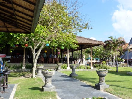 Blick auf die Frühstücksterrasse