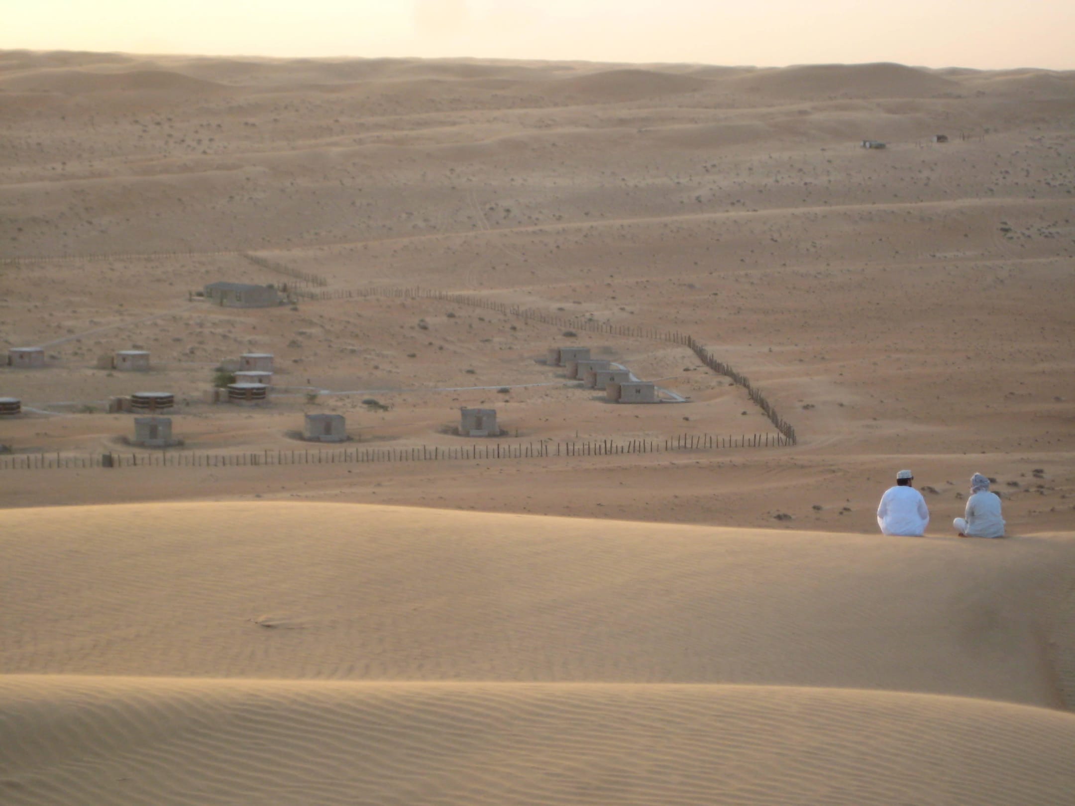 Blick von Sanddüne auf Kamp Safari Desert Camp