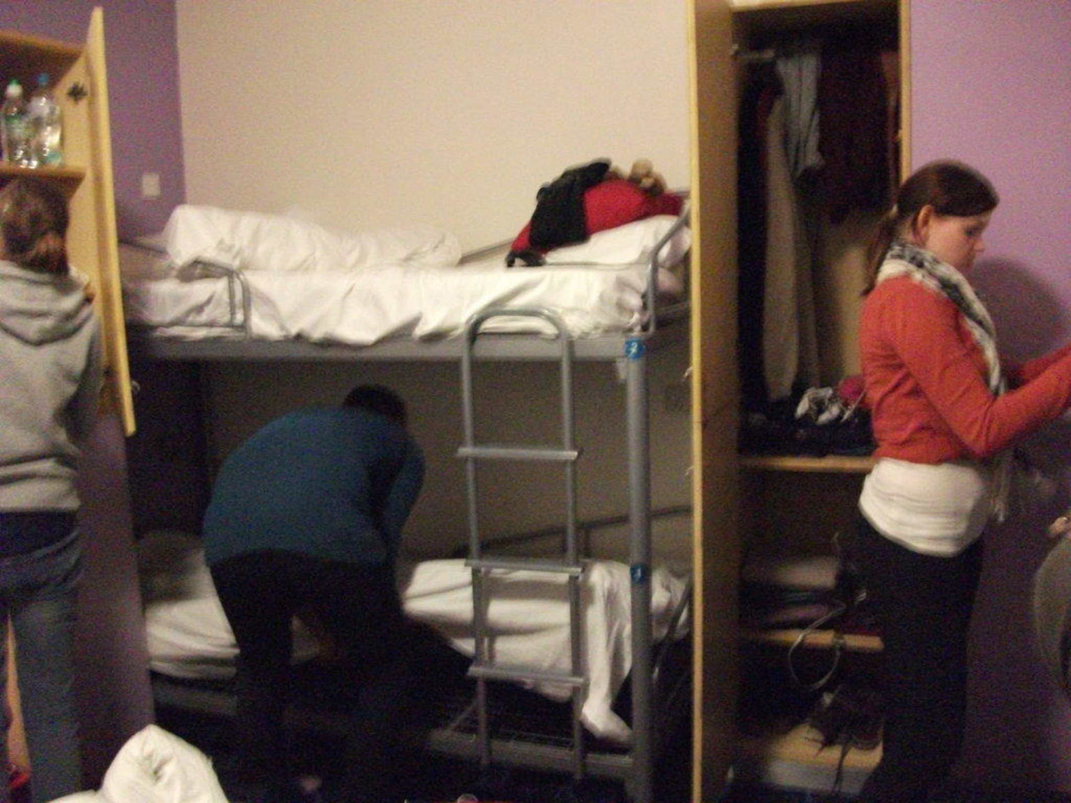 Aufteilung 6 Bett Zimmerjeweils mit Etagenbett und zu jedem Bett gehört 1 Schrank. Bettwäsche und Handtuch