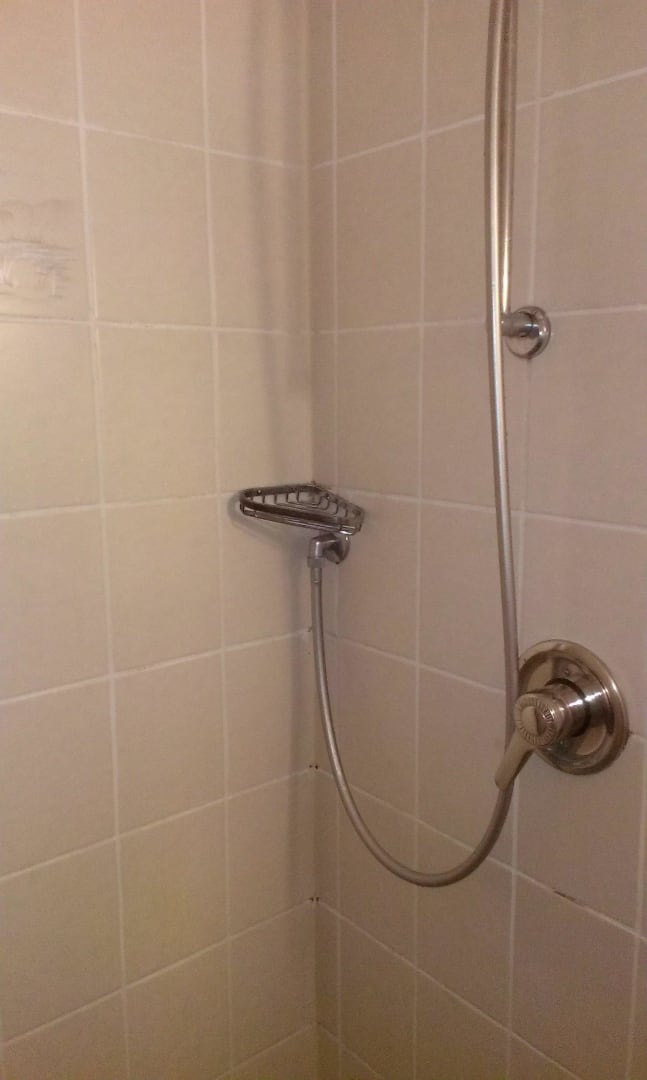 DuscheHier sieht man die Shampoohalterung, die wohl nicht mehr lange hält...