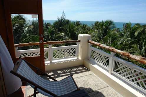 Herrlicher entspannender Blick auf Meer und Palmenwald