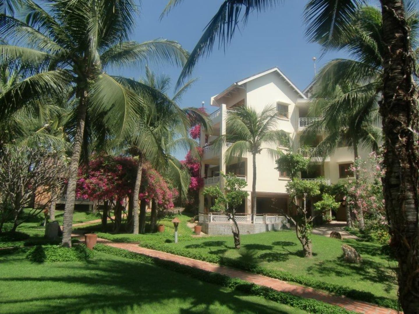 Superiorhaus200 m zu Frühstück + Pool dürften eigentl. keinen stören. Die Balkone, die man von hier aus sehen kann, haben ordentl. Ausblick in Richtung Meer. Die li. dahinter nur Straßenblick, die rechts dahinter Blick zu Straße, Nachbaranlage Coco Beach + Meer.