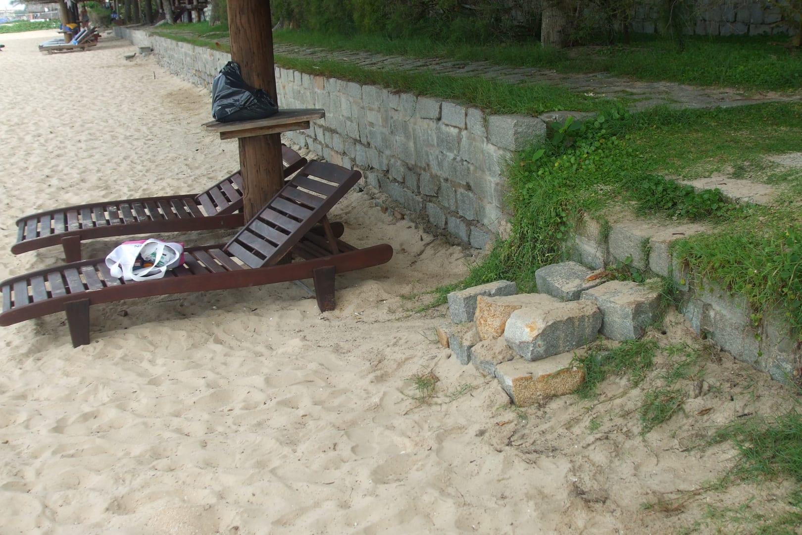 Improvisierter Zugang zu den Strandliegen