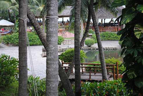 Gartenanlage mit Bar im Hintergrund
