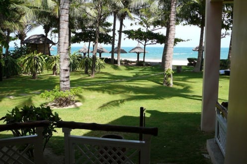 Blick von der Terrasse zum Strand
