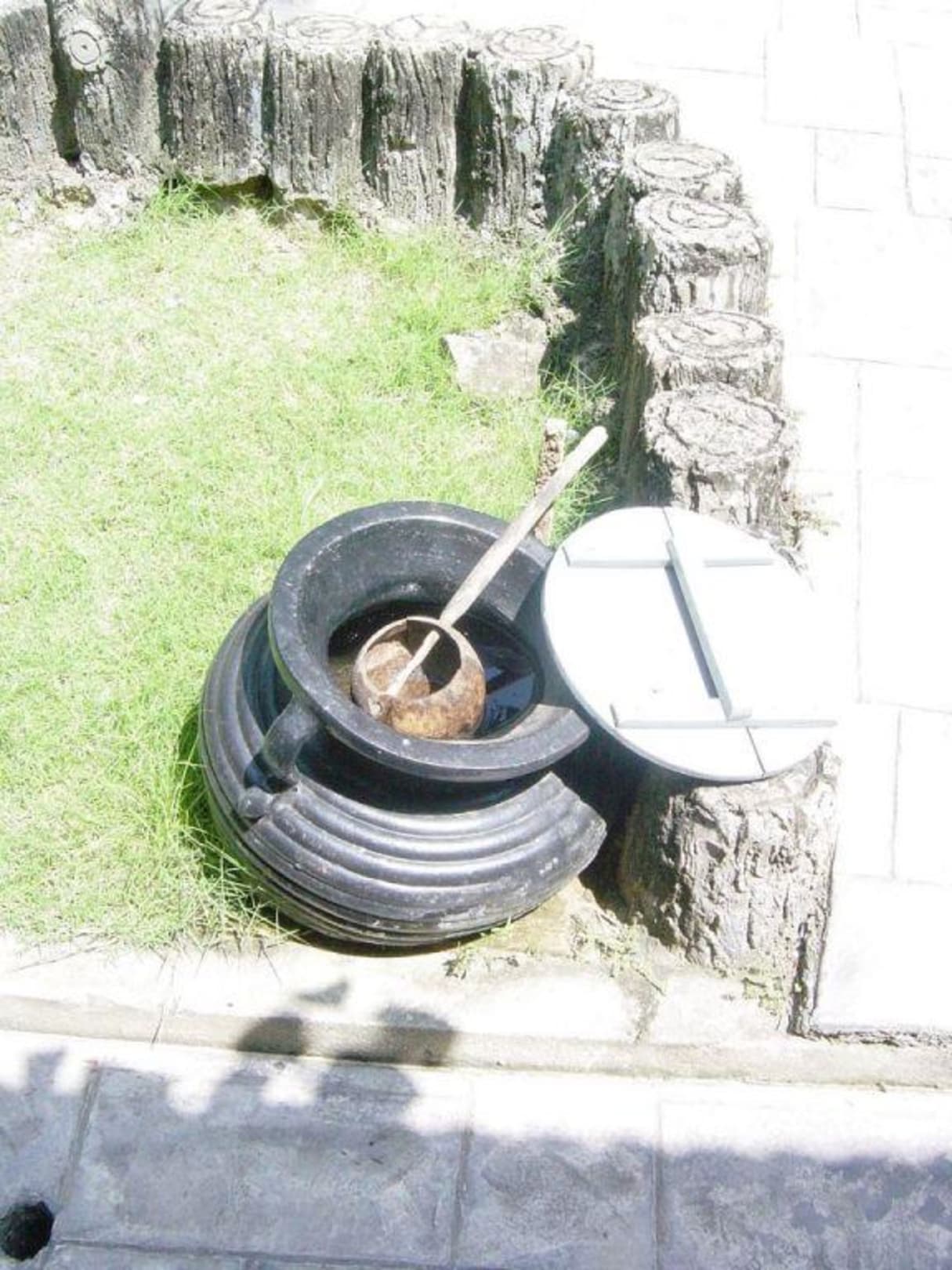 Nach dem Strandbesuch im Saigon Phu Quoc Resort konnte man sich mit dieser aus einer Kokosnuß und einen Stab hergestellten Schöpfkelle Wasser auf die Füsse giessen