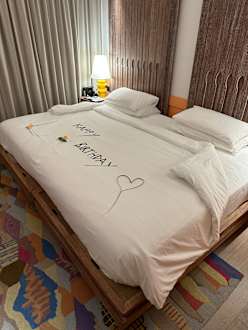 Zum Geburtstag schön dekoriertes Bett