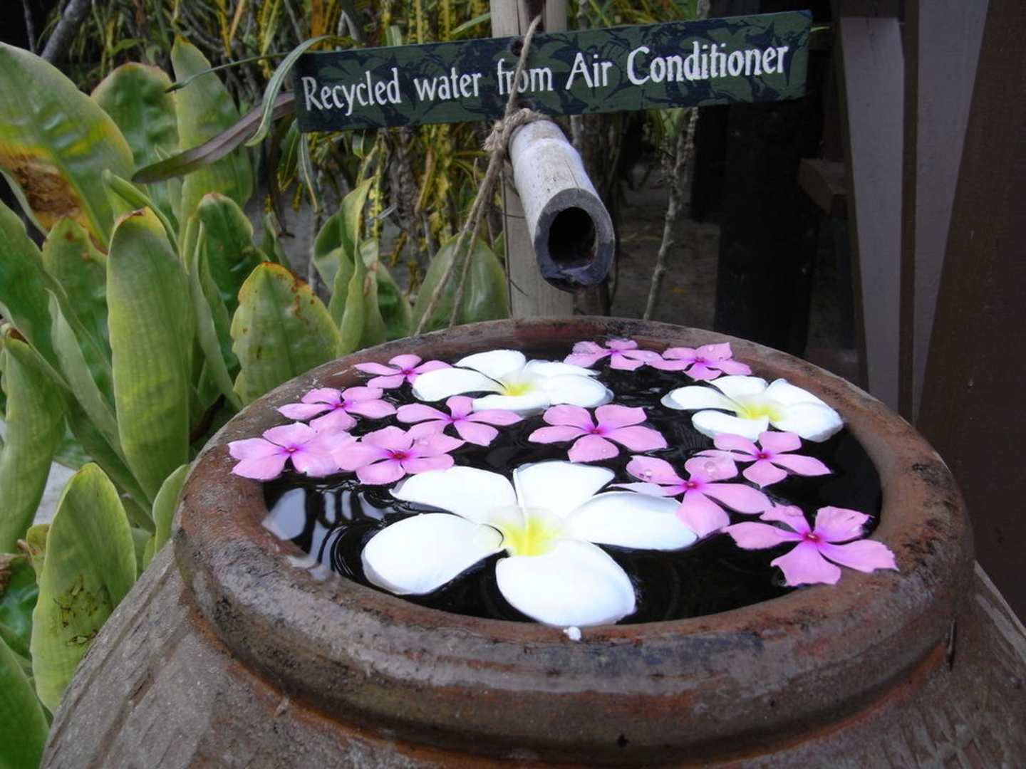 zum die Füße zu waschen , befindet sich vor dem Bungalow ! die Blumen wurden täglich erneuert
