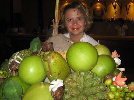 Dekoration aus FrüchtenSehr schön im Rezeptionsbereich sind diese Schalen mit Früchten aufgestellt. Da bekommt man Apetit auf mehr...