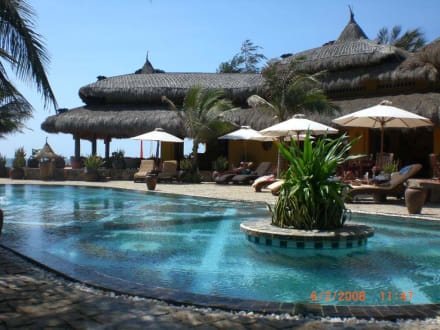 Blick über den Pool zum Restaurant / Bar