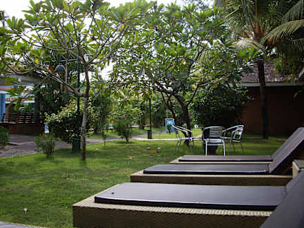 Gemütliche Liegen zu relaxen mit Blick auf d. Pool