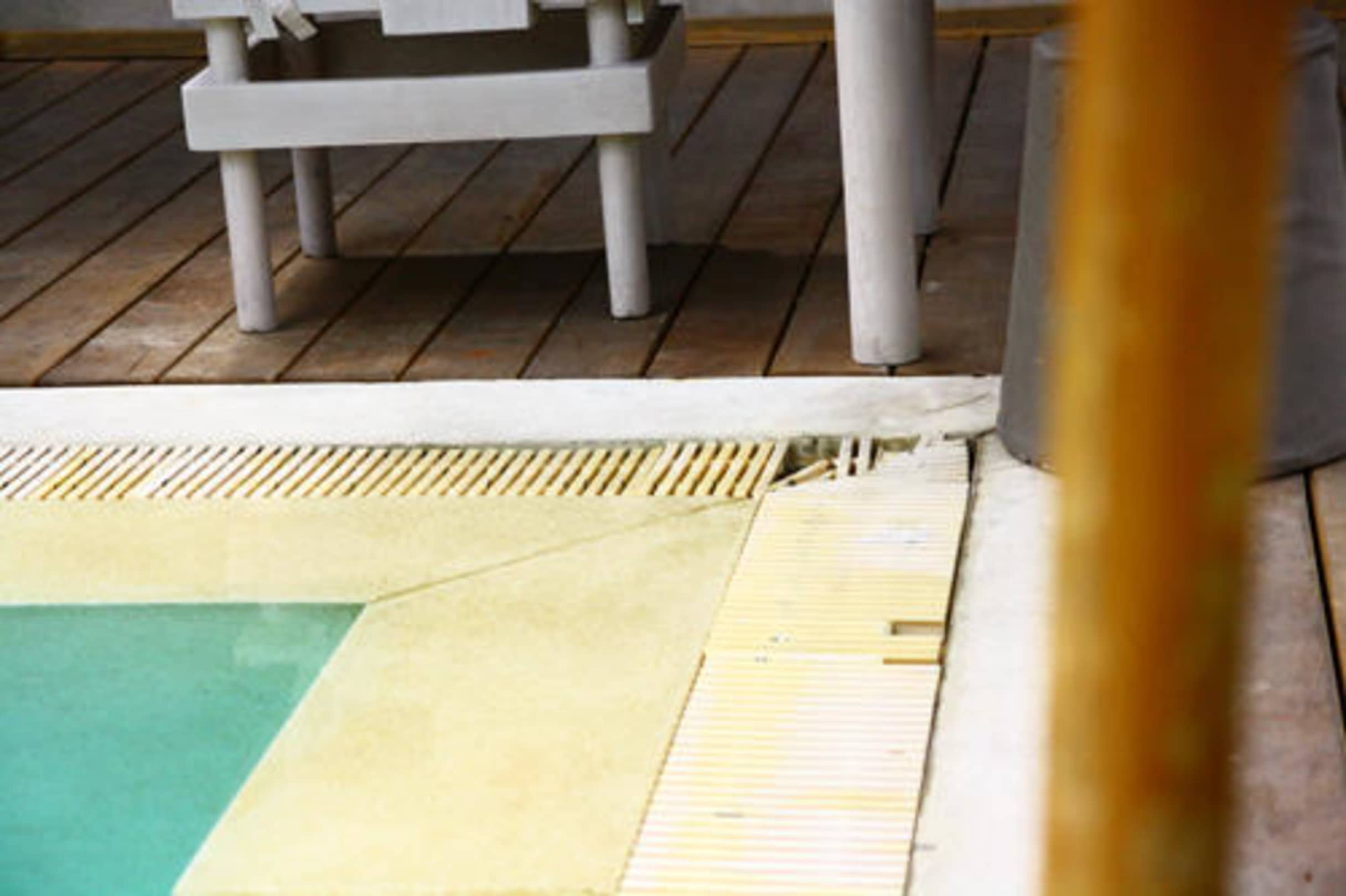 Defekter Wasserüberlauf am Pool