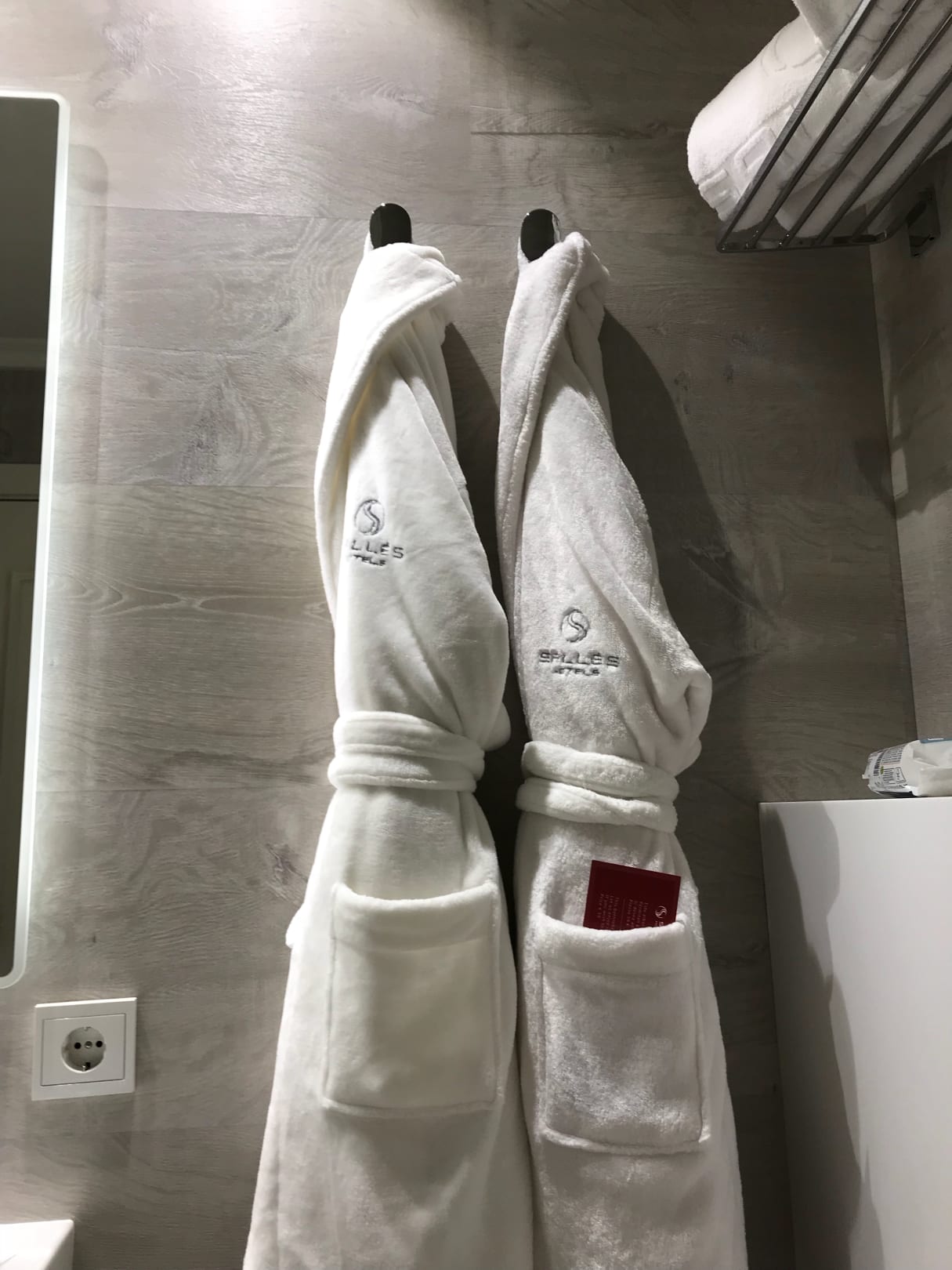 Bademäntel im Bad (das einzige Schöne am Zimmer)