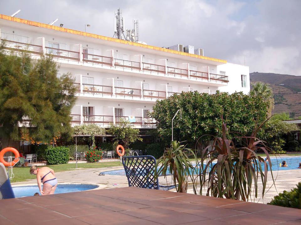 Blick von der "Abendbühne" auf Pool und Westflügel