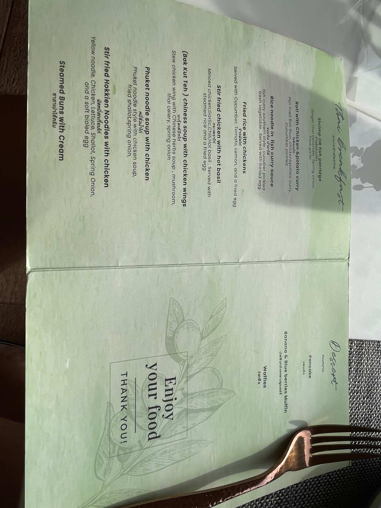 Speisekarte beim Frühstück