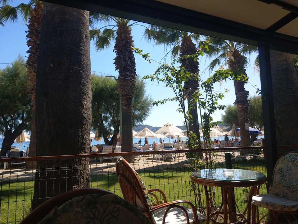 Blick von der Terrasse auf den Strand