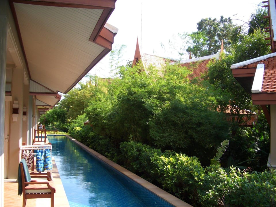 Pool-Access vor den Zimmern mit gedeckter Terrasse