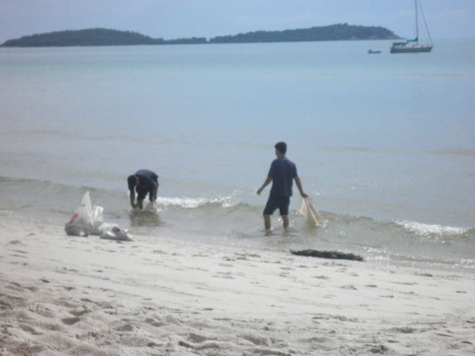 Täglich werden sehr viele Glasscherben sowie auch größere Steine durch die Strömung angespült. Das Hotel bemüht sich stets darum dass die Gäste sich nicht verletzen.