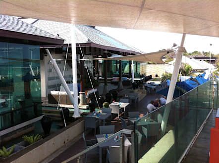 Blick von "The Roof" zur Frühstücksterrasse
