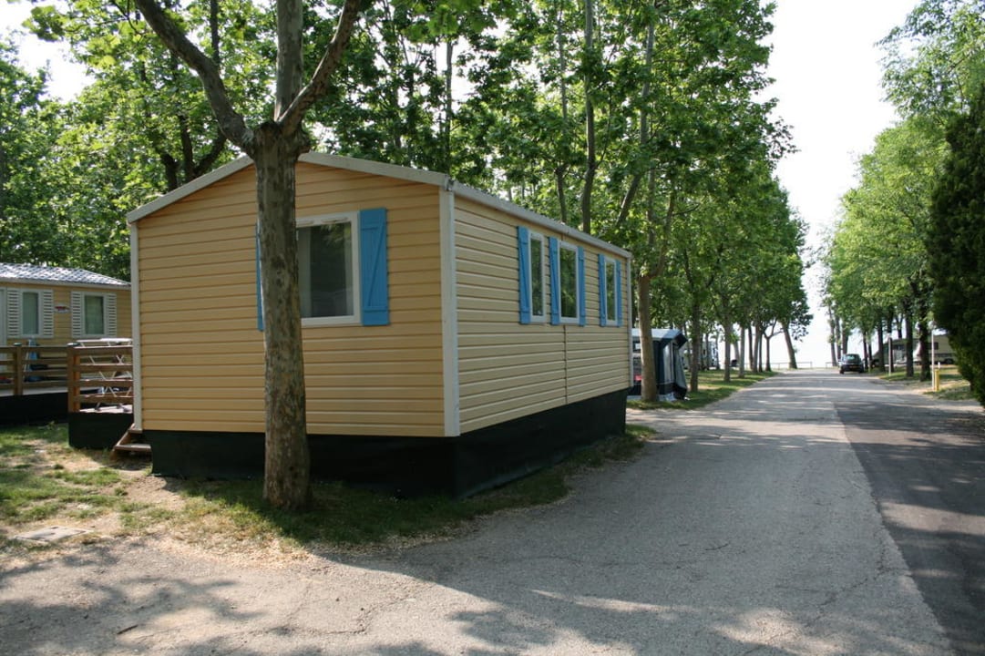 Rückseite Mobilehome Riviera mit Blick auf den Gardasee