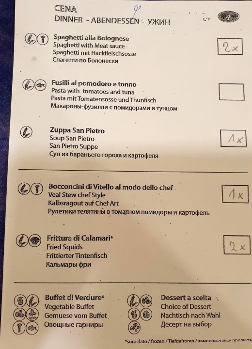 Menükarte zur Auswahl