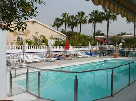 Pool von der Rezeption aus