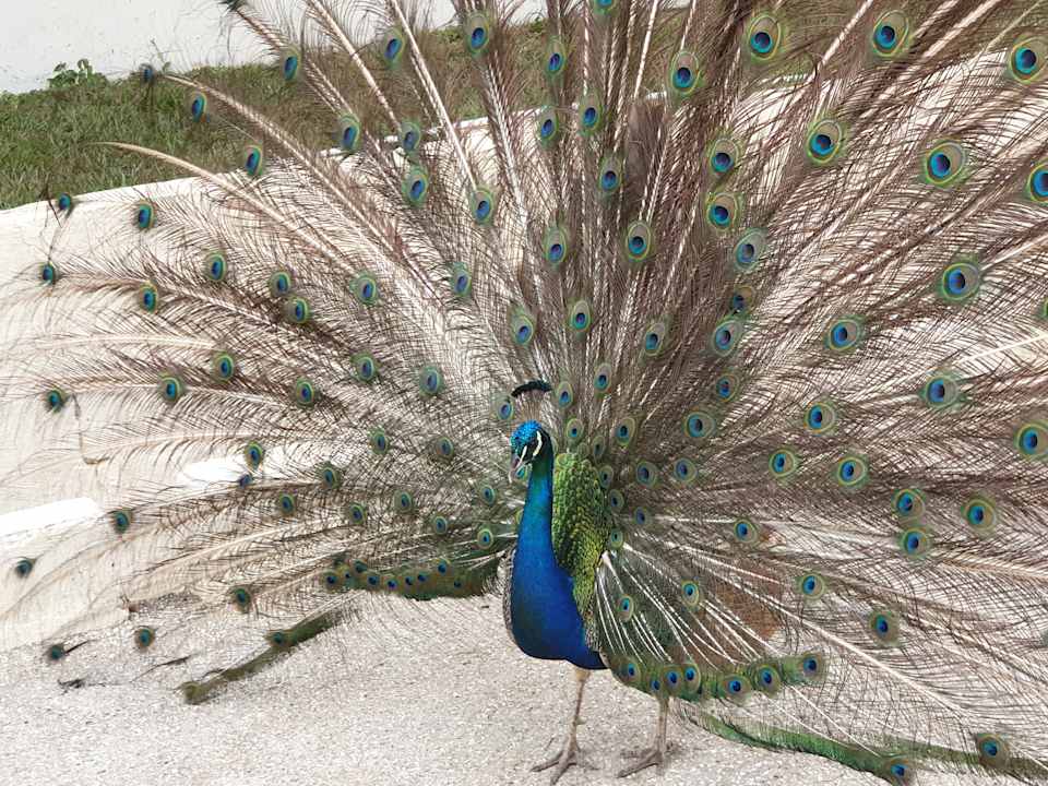 Die Pfauen waren jeden Tag vor unserer Terasse