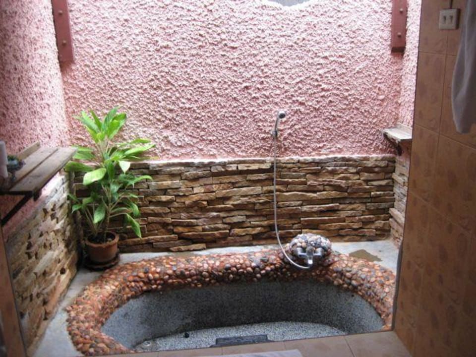 das Bad war auf den ersten Blick gepflegt. Beim näheren Hinsehen mussten wir feststellen, dass das Moskitonetz nicht richtig angebracht war und in den Ecken nicht richtig geputzt wurde.