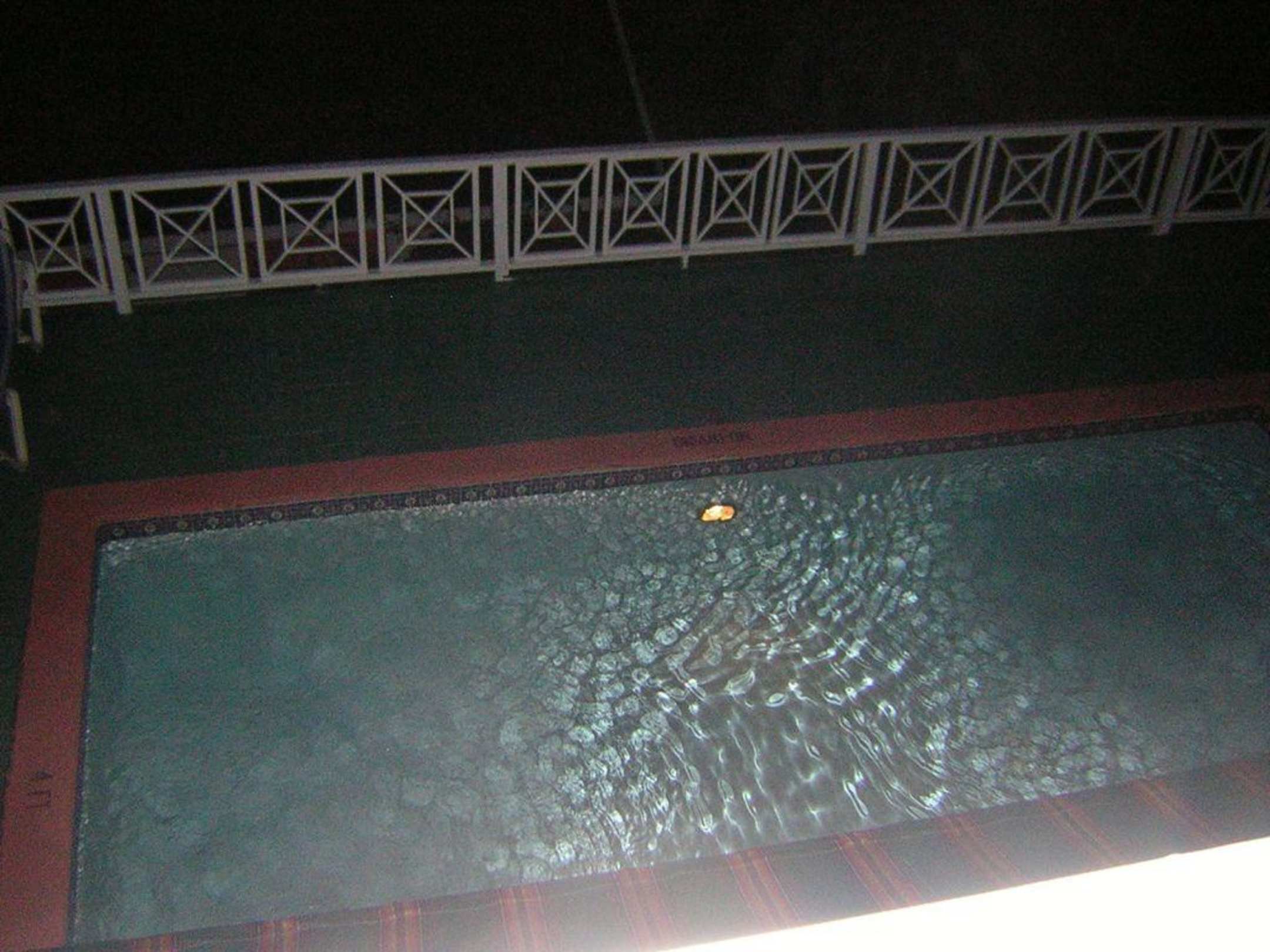 Blick auf eigenen Pool Nachts vom Balkon