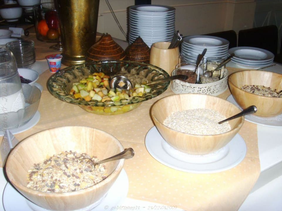 Thomas Hotel Husum FrühstücksbuffetFrühstücksbuffet, Müslis, Obstsalat usw.