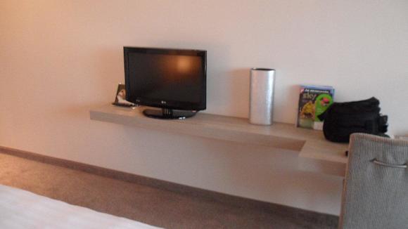 Junior-Suite 405Blick aus Richtung Bett auf Flachbild-TV