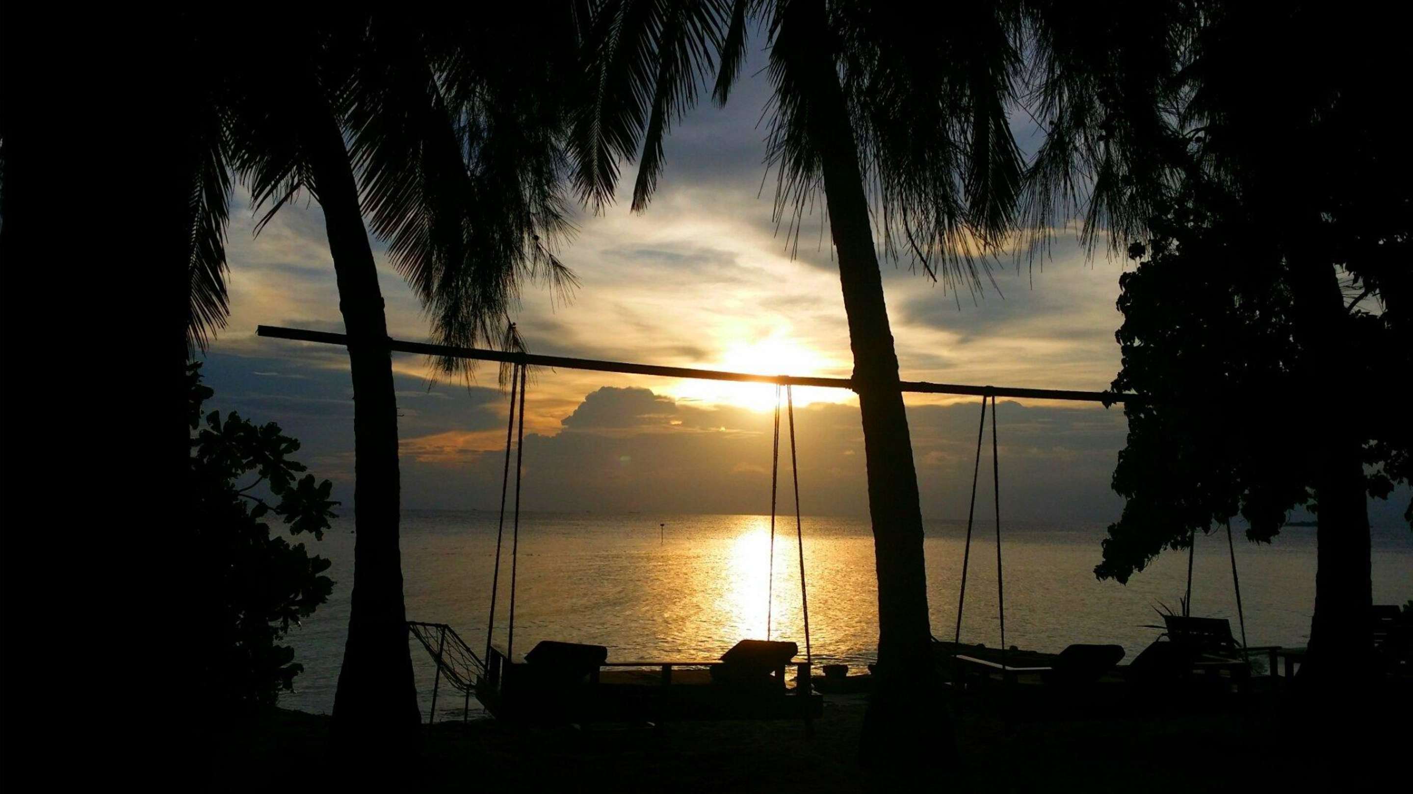 Sunset behind swings