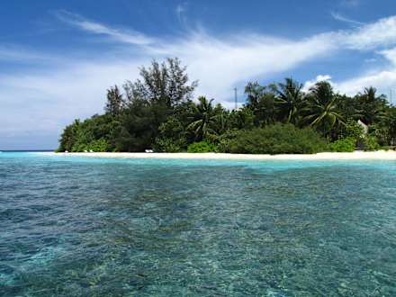Nordseite vom Schiff aus gesehenGut zu erkennen: Beginn/Ende des Korallengürtels + türkisblau der schmale Sandstreifen im Wasser