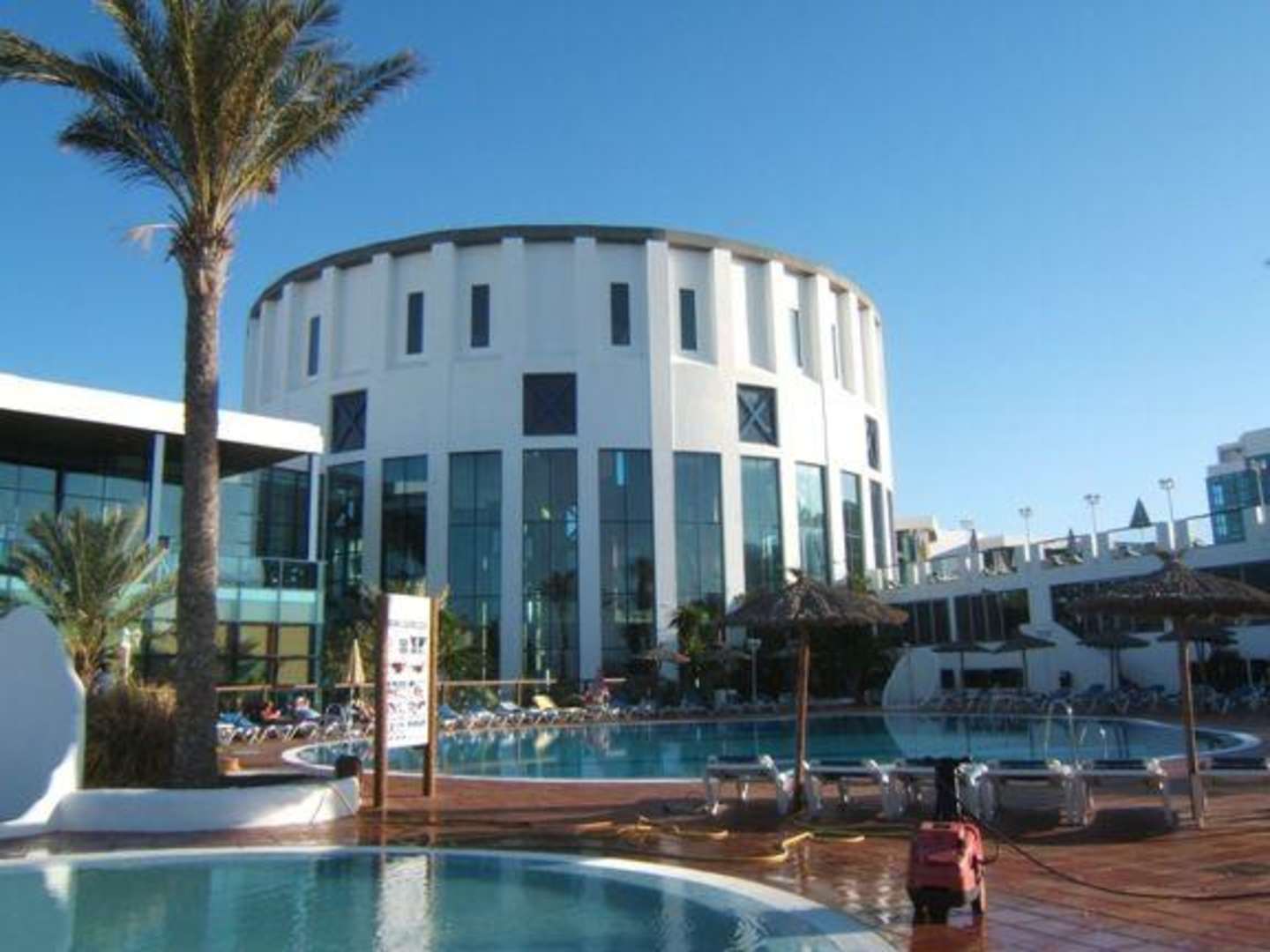 Rezeptionsgebäude von unterer Poolebene