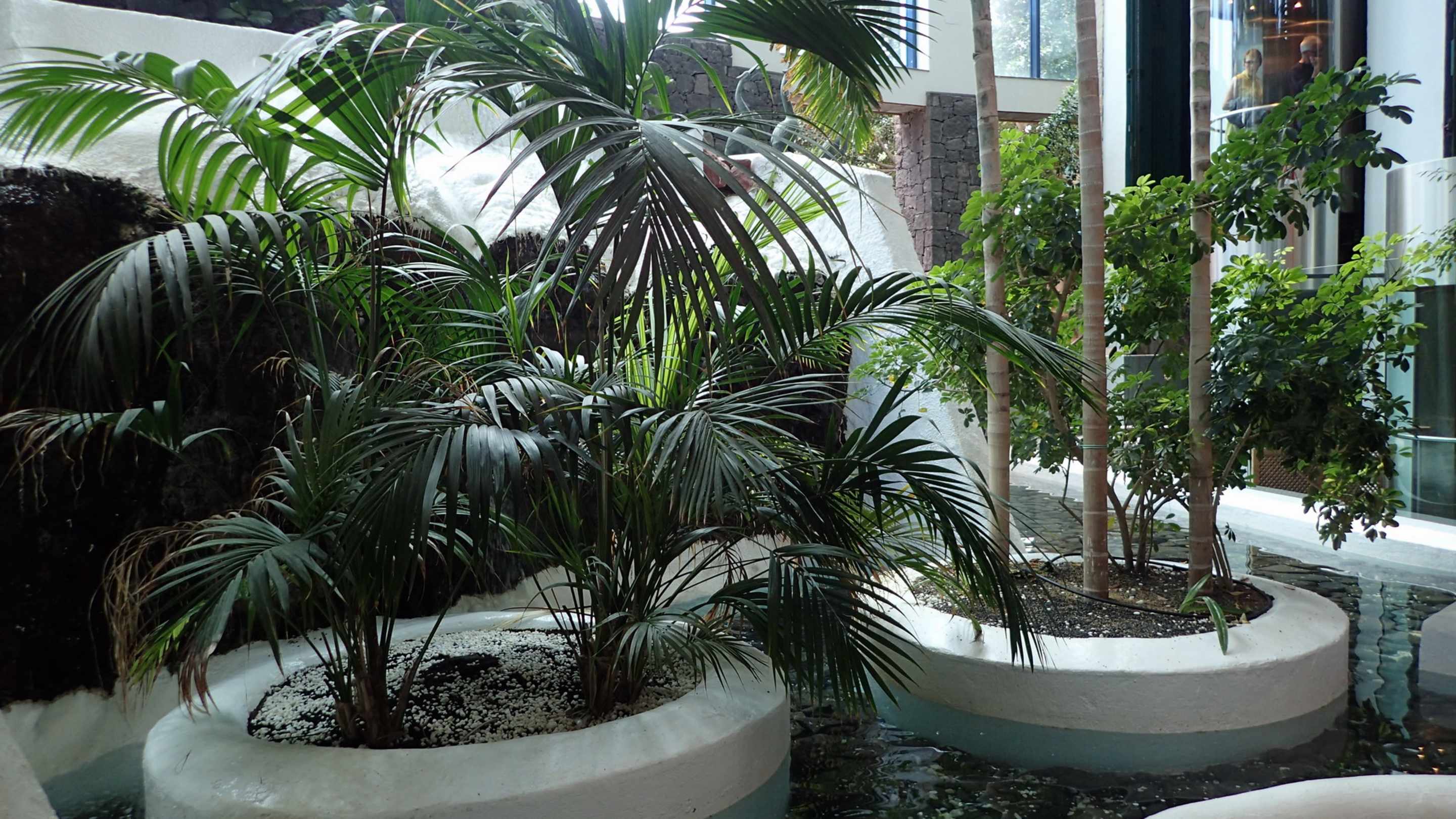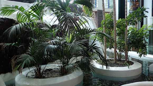 Teich mit Wasserfall im Untergeschoss des Hauptgebäudes