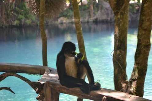 Affe an der Cenote in der Hotelanlage