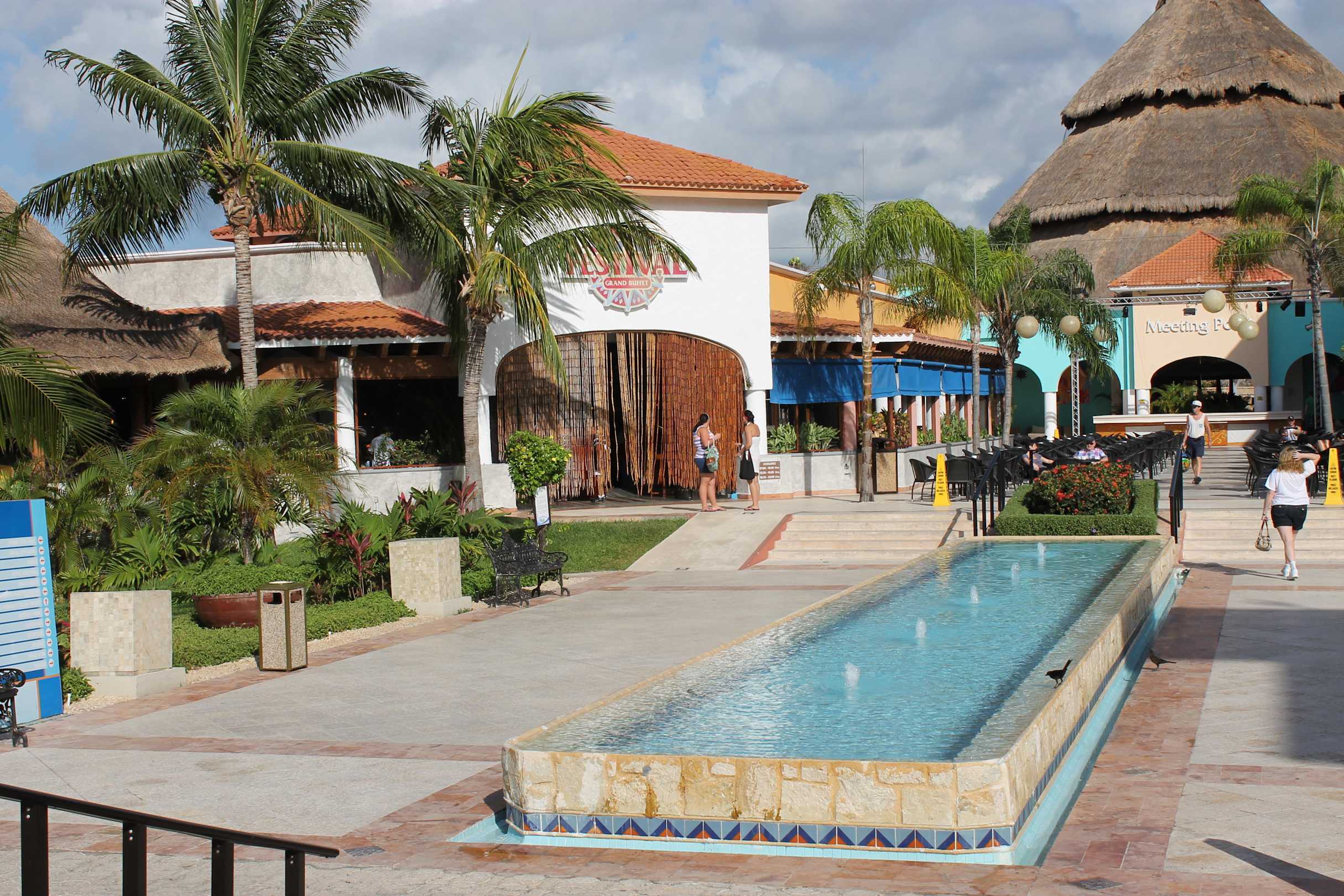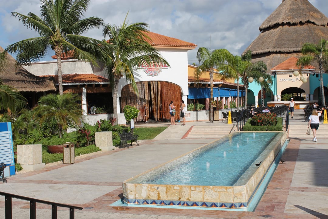 Das Centrum der Hotelanlage in Nähe des Strandes, links auf etwa 11 Uhr das Festival Hauptrestaurant, gerade aus auf etwa 13Uhr der Meeting Point sowie das Plaza für die Abendveranstaltungen.