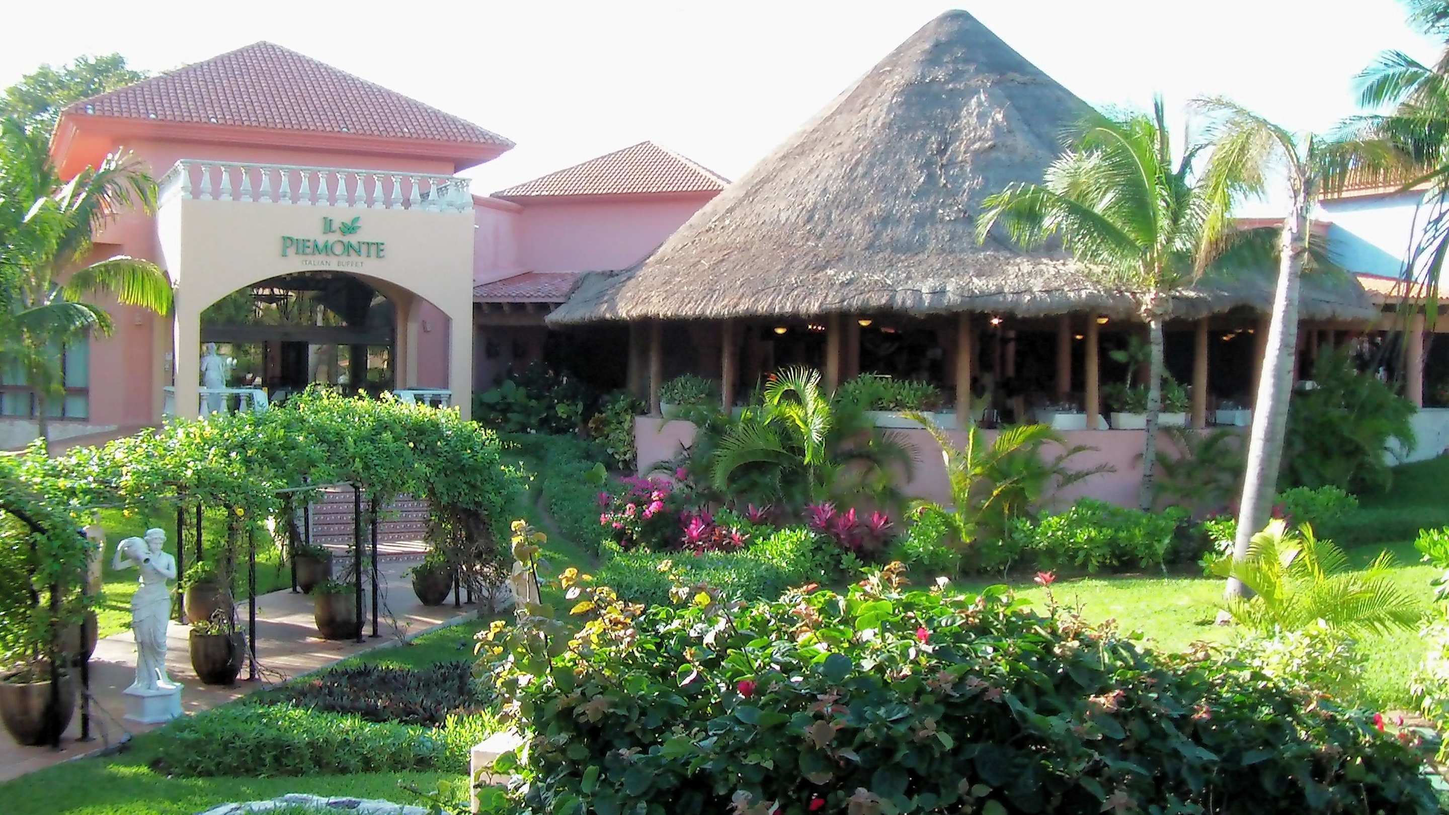 GartenanlageLinks das italienische Restaurant, rechts davon das Buffet-Restaurant