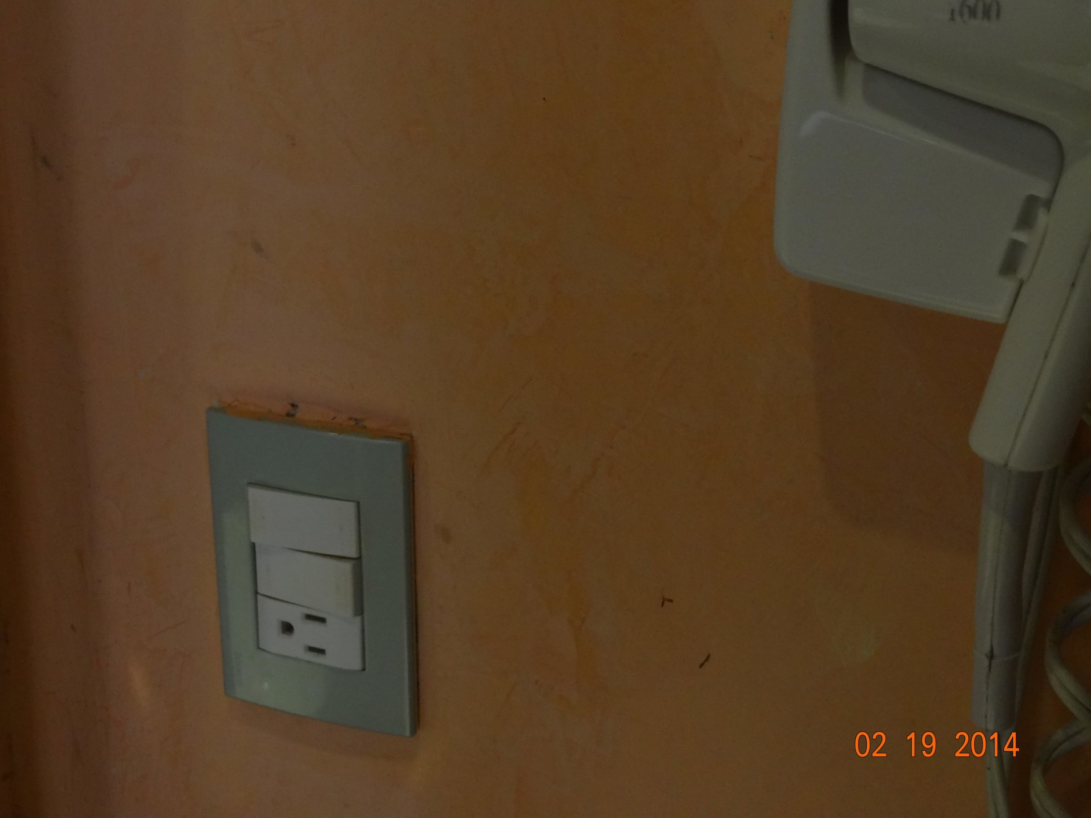 Schalter im Badezimmer m. Fön, der dann irgendwann nicht mehr funktionierte, aber dann nach dreimaliger Reklamation dann doch repariert wurde