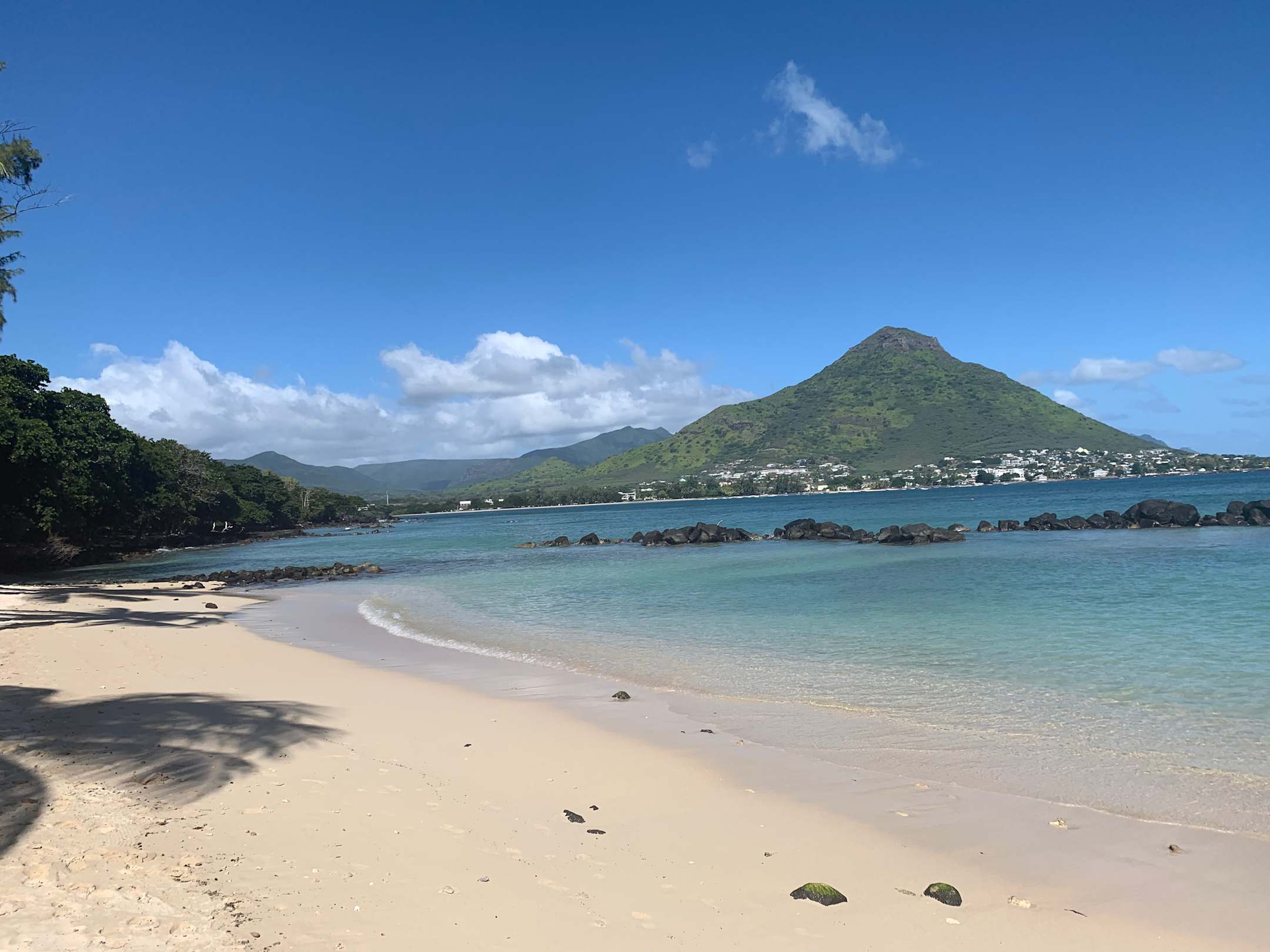 Strand und Blick auf die Bucht Bonn Tamarin