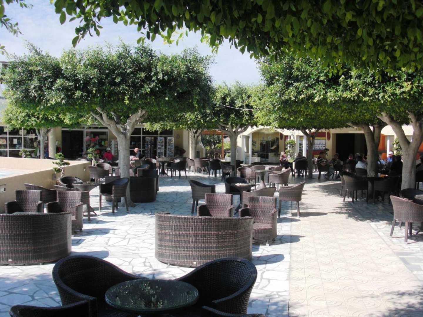 Sitzgelegenheit zwischen Pool und Lobby