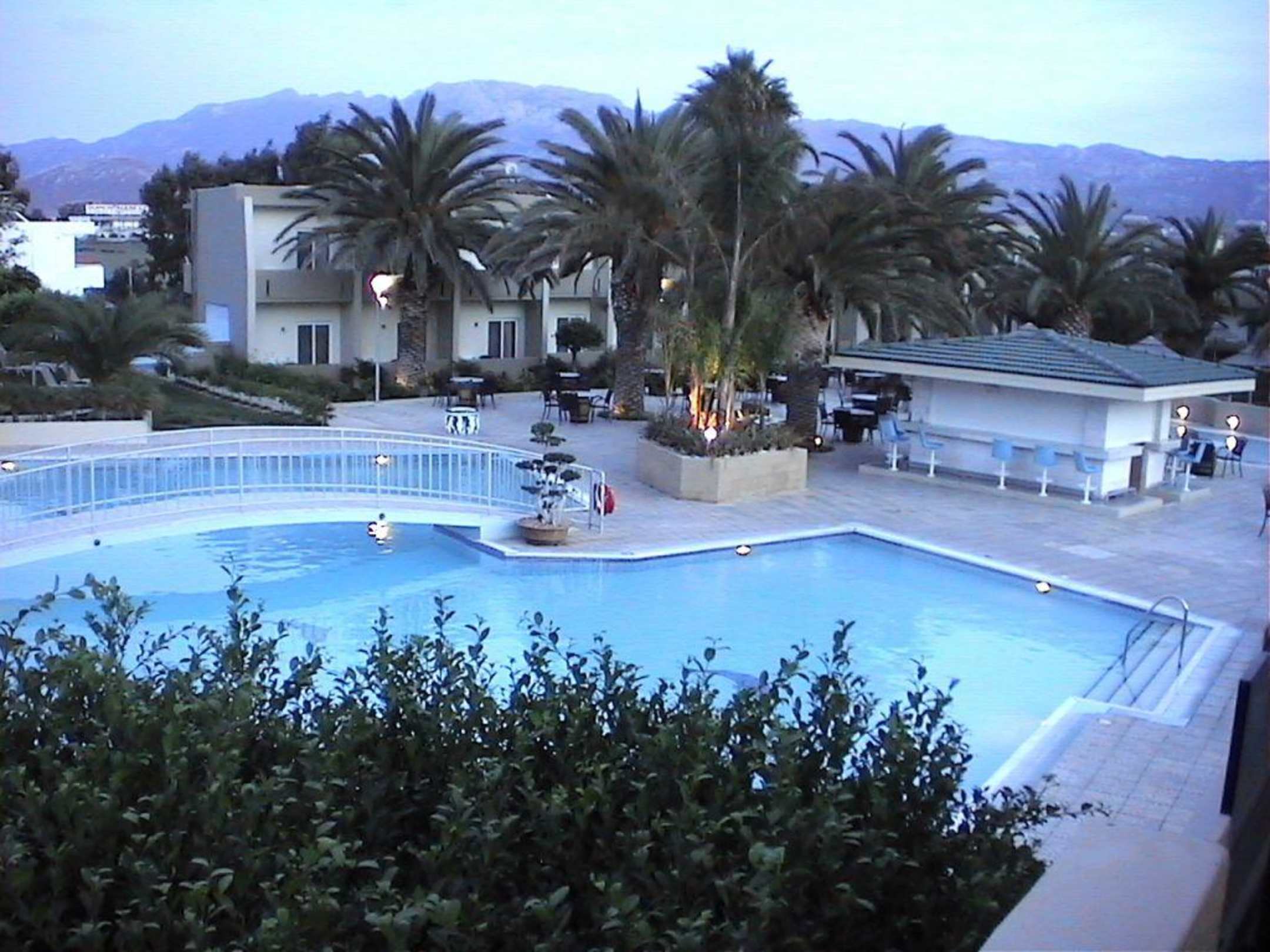 Pool und Poolbar in der Dämmerung